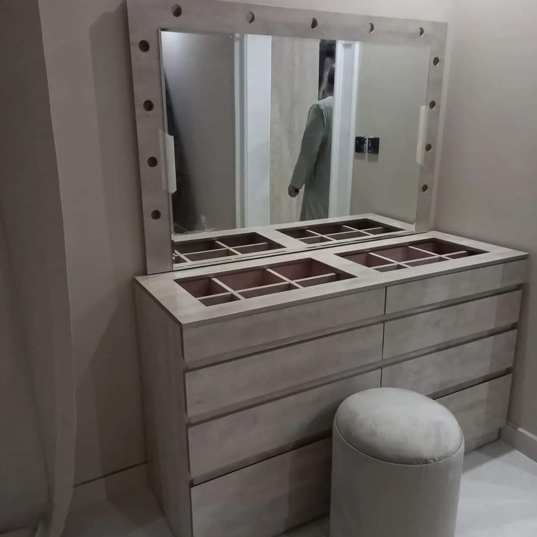 "نقدم خدمة تفصيل خزائن مطبخ و تفصيل دواليب مطبخ بجودة عالية. بالإضافة إلى تفصيل دولاب مع تسريحة و تفصيل كومدينات لتكملة ديكور غرفتك. أفضل محلات تفصيل غرف نوم بالرياض ."