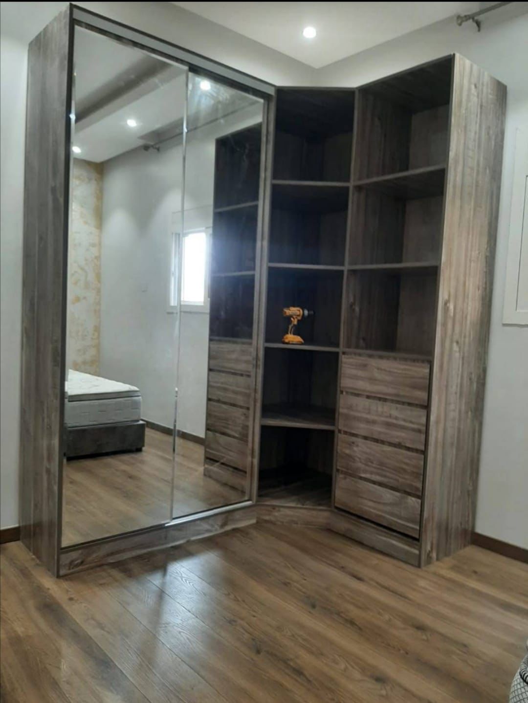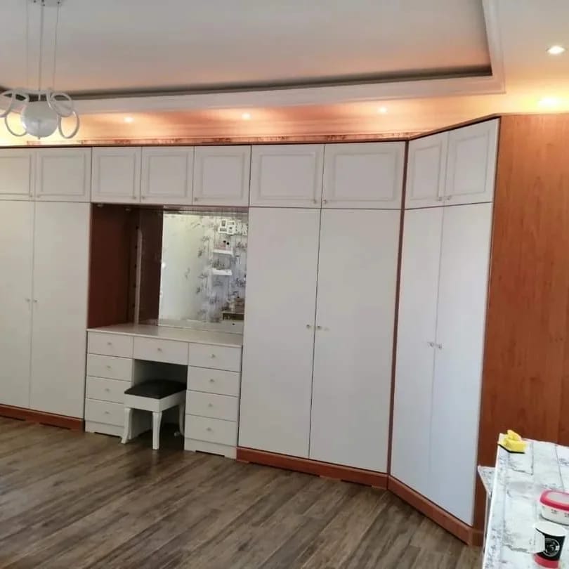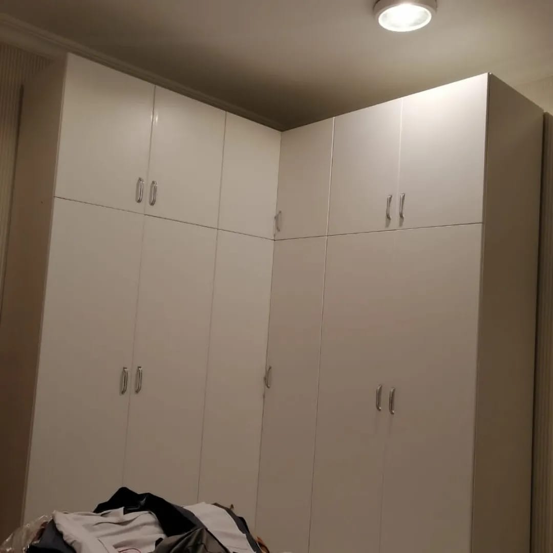 "حلول تفصيل دواليب تخزين و دولاب ملابس زاويه لاستثمار كل ركن في غرفتك. نقوم بـ تفصيل كبتات ملابس و تفصيل خزانة ملابس بالحائط بتصاميم عصرية تناسب المنازل الحديثة في الرياض."